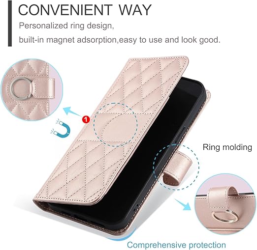 Vokpok Motorola Moto G24 ケース 手帳型 モトローラ g24 財布型 ケース 高級PUレザー おしゃれ Moto G24 ケース 手帳型 強力マルチカード収納 手首ベルト、斜め肩ベルト両用 モトローラ g24 ケース スタンド機能付き 耐衝撃 全面保護Moto G24 ケース おしゃれ小香風 人気上品な シンプル気質 ギフト Moto G24 対応6.6",ローズゴールド a
