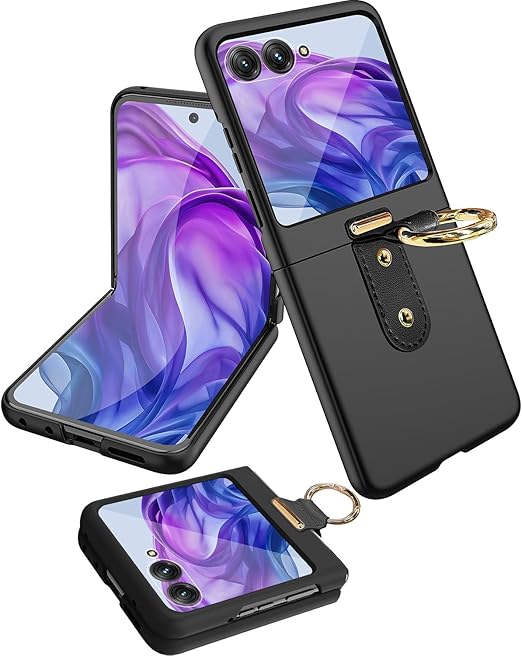 Miimall 対応 Motolora Razr 50/Razr 50s ケース Case リング付き 強化ガラスフィルム 耐衝撃【マット質感 ヒンジ保護 軽量 傷防止 おしゃれ 全面保護 脱着簡単 携帯便利]スマホケース バンパー モトローラ Razr 50 スマホカバー対応(ブラック) a