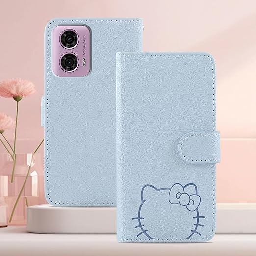 Kedic Motorola Moto G24 ケース 手帳型 モトローラ G24? ケース 大きな花の顔の猫のパターン ケース Moto G04 ケース Moto E14 ケース 適用 モトローラG24 スマホケース 手帳型 モトG24 ケース モトG04 カバー の選択 指紋なし 適度な厚さ 軽量グリップ 柔軟性 より包括的な保護 スマホ スタンド ライトブルー a