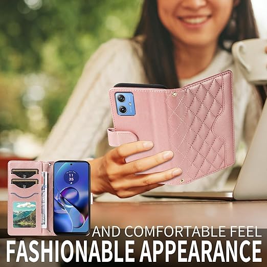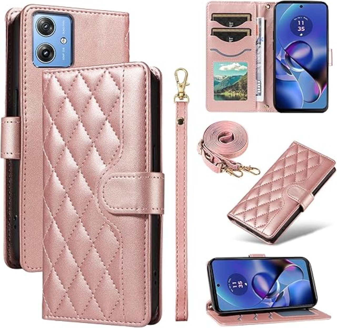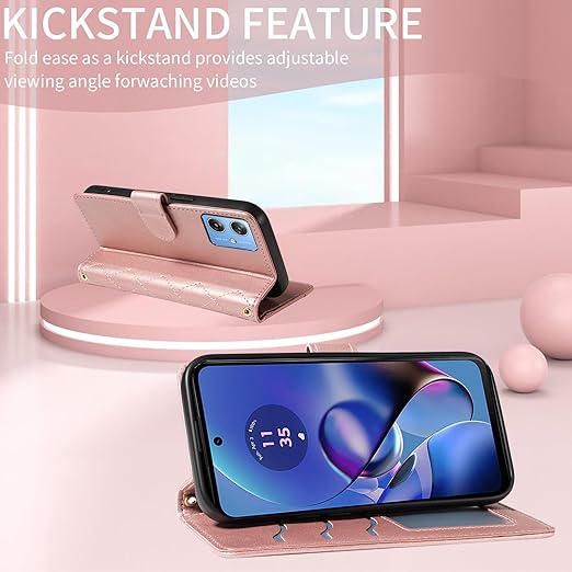 For Motorola Moto G64 5G/G64Y 5G ケース Moto G64y 5G ケース 手帳型 Moto G64 5G ケース ショルダー モトローラ G64 ケース 肩掛け い 財布型 カード収納 横置き機能 耐衝撃 携帯カバー ストラップ付き(ローズゴールド) a