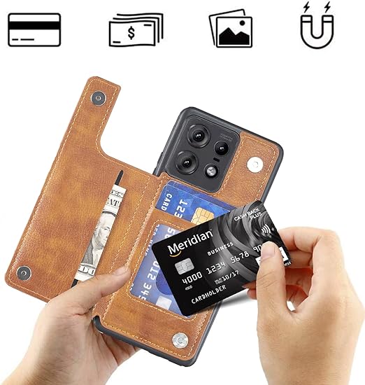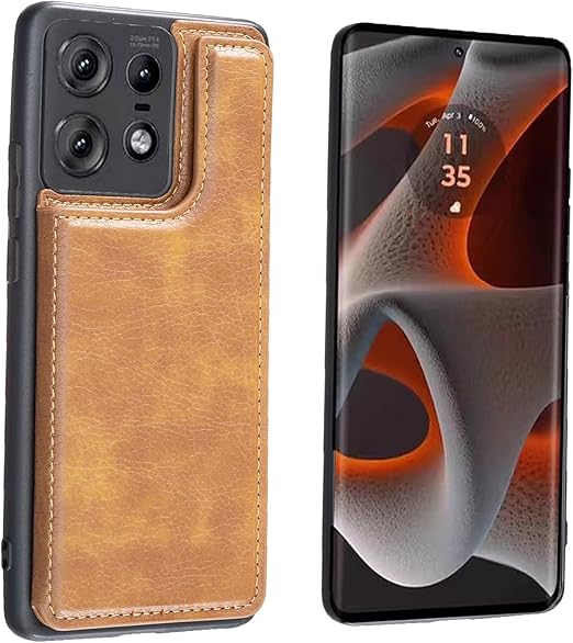 【Viesa】背面カード 手帳型ケース Moto Edge 50 Pro/Edge 50s Pro 対応 Motorola スマホ バックカバー ケース 手帳型 (ブラウン) 手作り 財布型 マグネット 薄 軽量 ポケット収納付き 背面カバー 手帳 横置きスタンド機能 背面型ケース モトローラ モト edge50プロ edge50pro KHAKI a