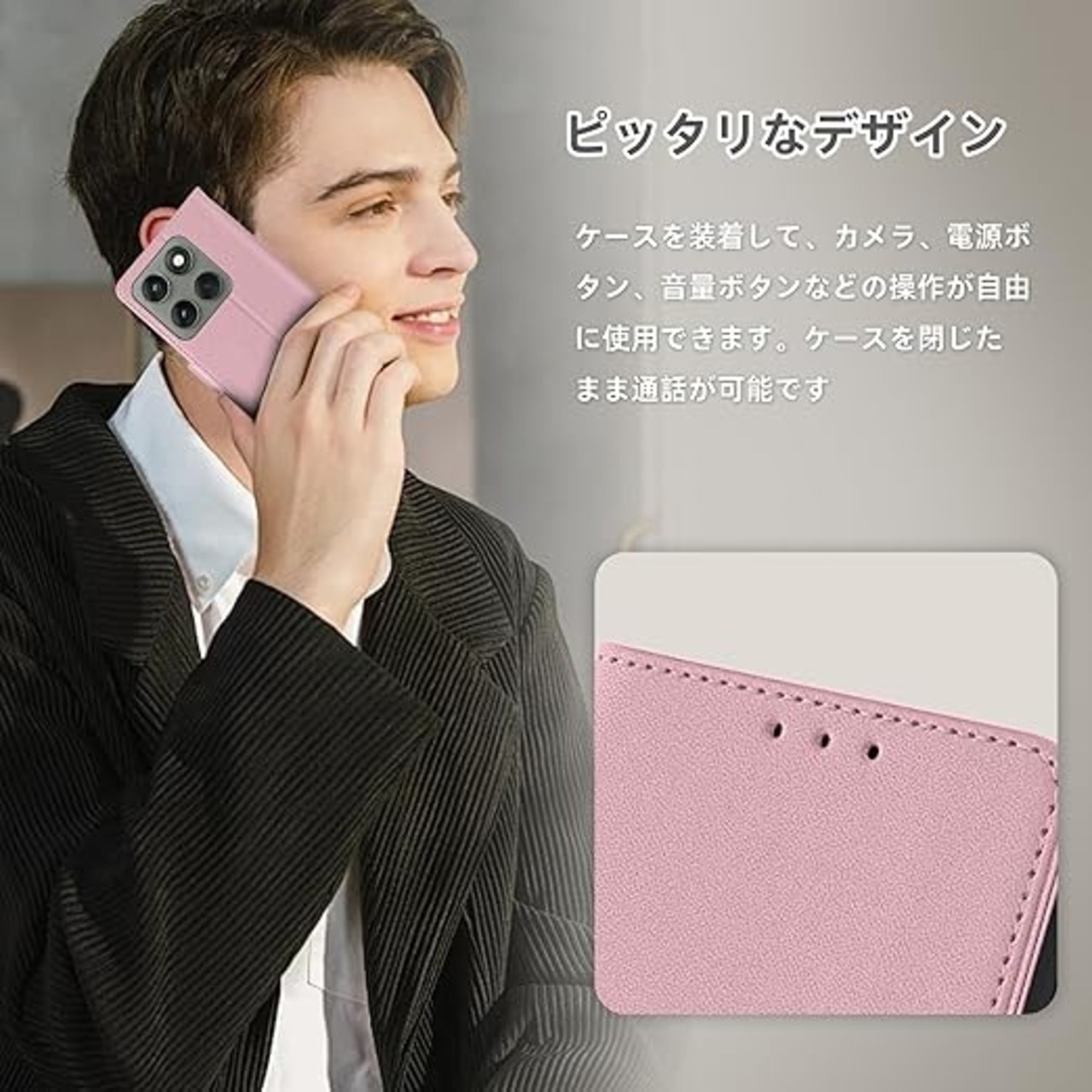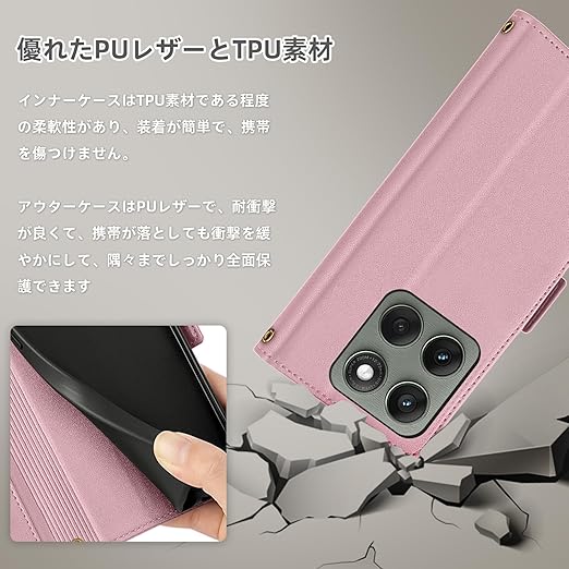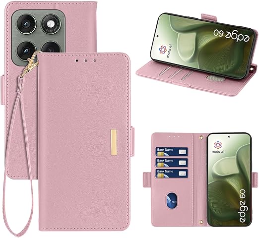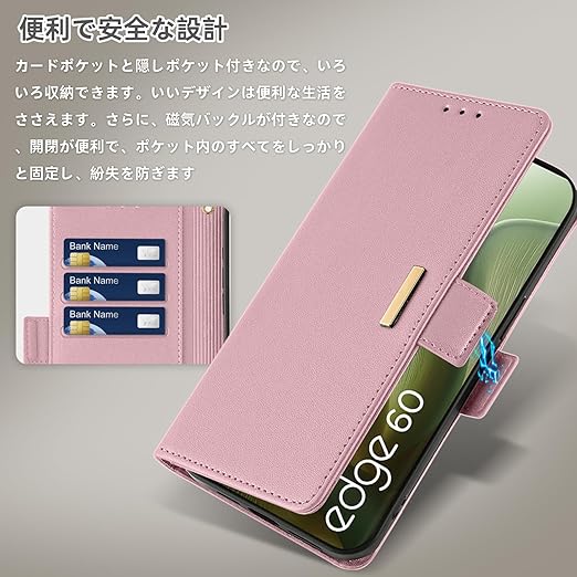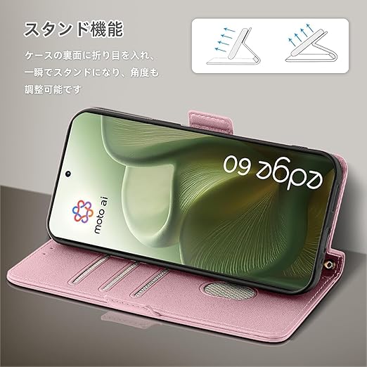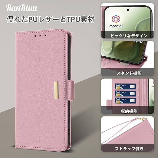 RanBluu コンパチブル Motorola Edge 60 ケース 手帳型 モトローラ edge 60用 高級PU レザーケース カバー スマホケース 財布型 カード収納 マグネット カメラ保護 横置きスタンド機能 ストラップ付き 耐摩擦 耐衝撃 全面保護(Motorola Edge 60対応 ピンク) a