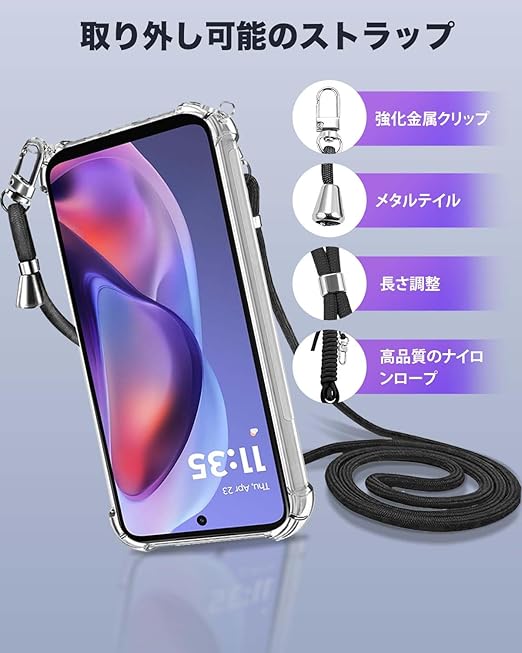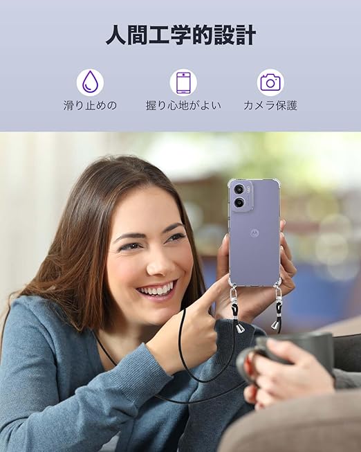 For Motorola moto g05 用 ケース 保護ケース カバー 肩掛け 斜めかけ 縄掛けケース 【KONXISA】 TPU 軽薄型 スマホケース バンパーカバー レンズ保護 耐久性 耐衝撃 全面保護カバー 携帯カバー 傷つけ防止 黄ばみ防止 指紋防止 スマホケース (クリア) a