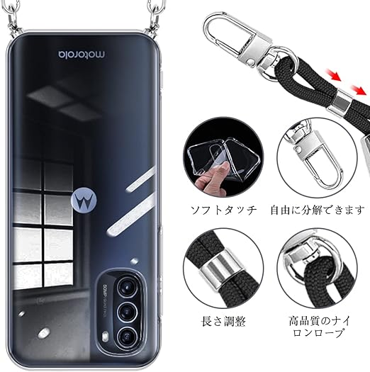 motorola moto g52j 5G SPECIAL ケース/Moto g52j 5G II ケース/Moto g52j 5G ケース クリア ショルダー クリア モトローラ モト g52j / モトローラ モト g52j ii カバー 薄型 軽量 moto g52j 5G スマホケース ストラップ付き 肩掛け 斜めかけ 縄掛けケース 透明 TPU 取り外し可能 落下防止 紛失防止【透明】 a