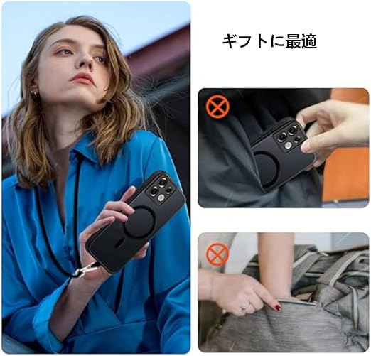 [MagSafe対応]Motorola Moto Edge 50 pro / 50s Pro ケースマグネット搭載 ショルダー ストラップ2枚付き 紐付き 首掛け 肩がけ 斜め掛け 長さ調整可能 ケース MOTO edge 50 Pro カバ−ストラップホール付き 耐衝撃 半透明マット ワイヤレス充電対応 モトローラ Edge50 プロブラック a