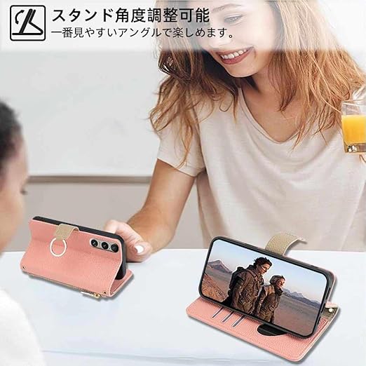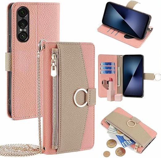 Xperia 1 VII ケース 手帳型 エクスペリア1 vii ケース 手帳型 エクスペリア1vii カバー ショルダー ストラップ付き スタンド機能 カード収納 ミラー付き 耐衝撃 肩掛け おしゃれ 女性 柔らかいTPU TOO&SOO Xperia1VII スマホケース 斜め掛け - ピンク a