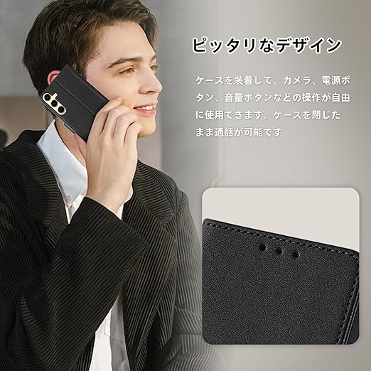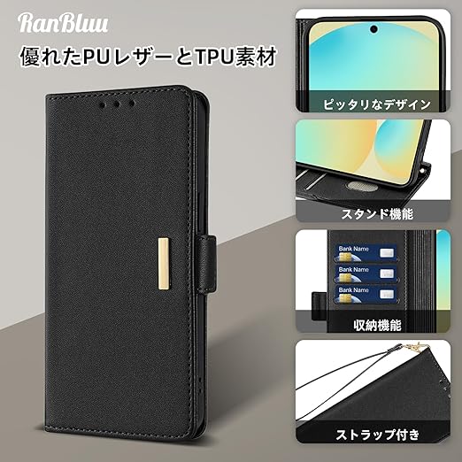 RanBluu コンパチブル Samsung Galaxy S24 FE ケース 手帳型 au SCG30 カバー ギャラクシー s24 fe 用 レザーケース 携帯カバー スマホケース 財布型 カード収納 マグネット開閉 カメラ保護 横置きスタンド機能 ストラップ付き 耐摩擦 耐衝撃 全面保護(Galaxy S24 FE 対応 ブラック) a