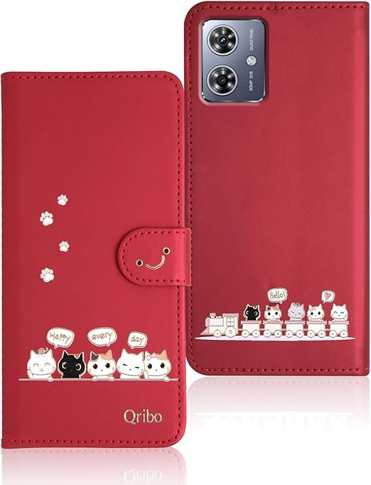 Qribo Moto G64 5G / Moto G64Y 5G ケース 手帳型 モトローラ G64 ケース Moto G64 5G ケース シンプルなのに可愛いデザイン エンボス加工猫柄 うれしい気持ち 6.5インチ対応 Motorola G64y スマホケース モトG64y 5G ケース 薄型 Motorola G64 5G ケース 防水 の耐久性 滑り防止 美しい 贈り物 友達 - レッド a