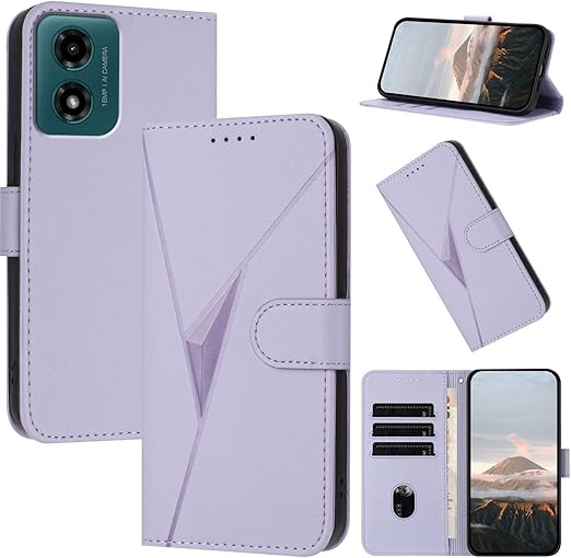 Reddylin 対応 Motorola Moto G24 ケース 手帳型 モトローラ g24 ケース 手帳型 立体感のある三角模様 Moto G04 ケース Motorola G24 ケース 感触が心地良い スタンド機能 カード収納 財布型 モトローラ g04 ケース motog24 ケース Moto G24 カバー デザイン感と あふれる 耐衝撃 滑り止め指紋防止,ライトパープル a
