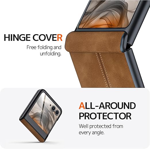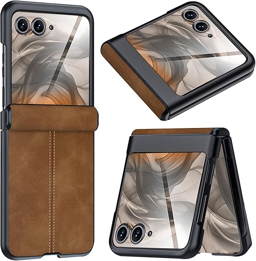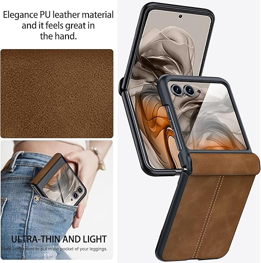 NINKI適応Moto Razr 50 ケース 液晶保護フィルム付き 手触り良き レザー製 PU革 ビジネス Qi充電対応 バンパー ワイヤレス充電 擦り傷防止 落下防止 指紋防止 レンズ保護 人気 モトローラ レーザー 50 ケース (ブラウン) a