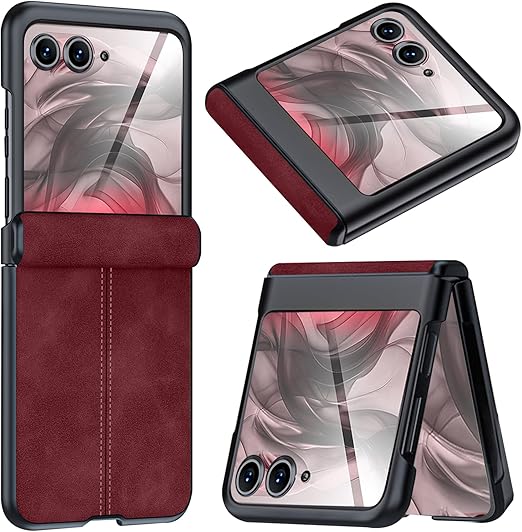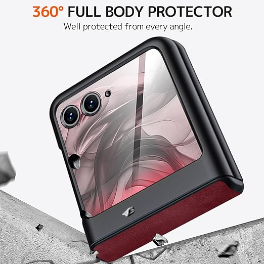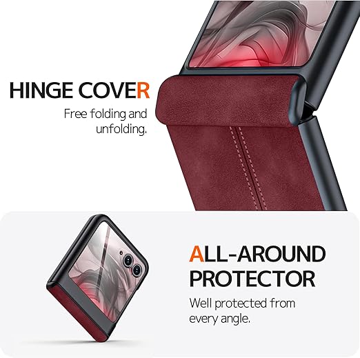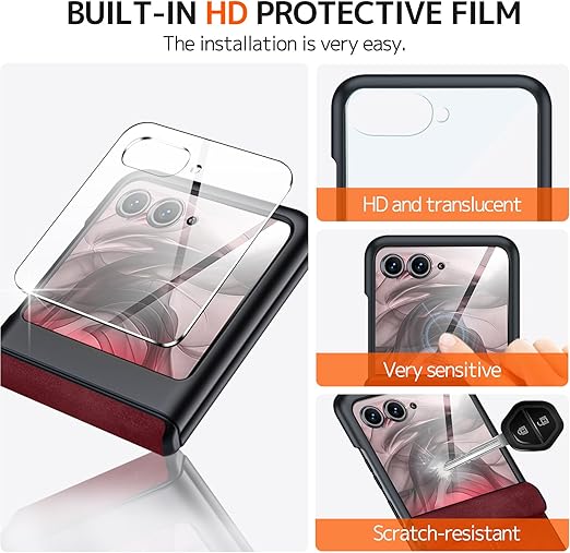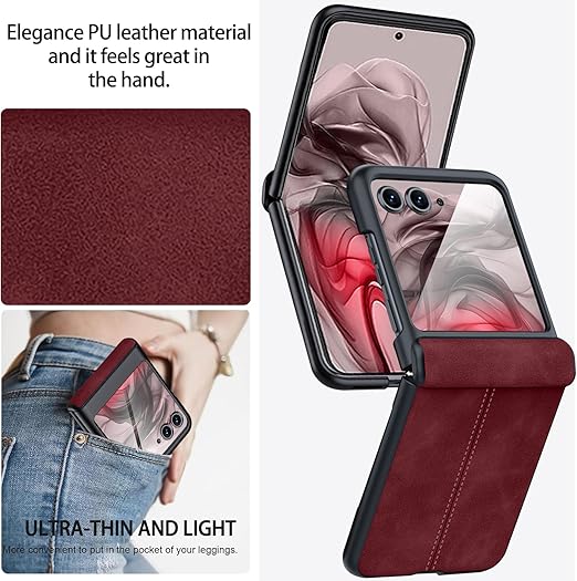 NINKI適応Razr 50 ケース 液晶保護フィルム付き 手触り良き レザー製 PU革 ビジネス Qi充電対応 バンパー ワイヤレス充電 擦り傷防止 落下防止 指紋防止 レンズ保護 人気 モトローラ レーザー 50 ケース (レッド) a