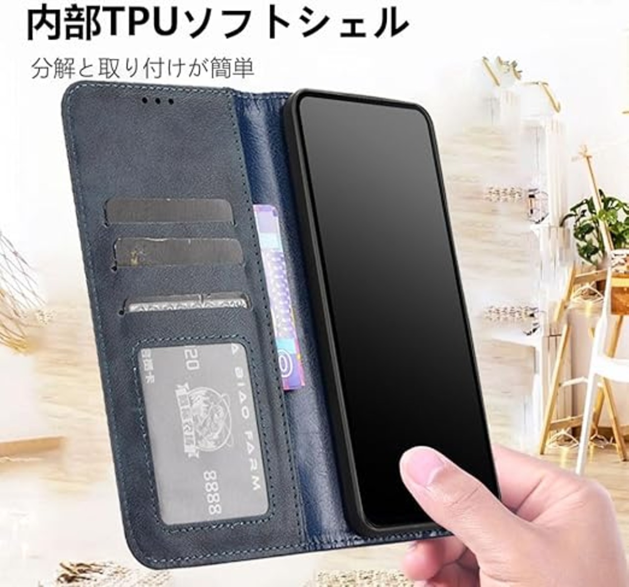 【商品の特性】: 横置きスタンド機能が付いて、好きな角度で動画鑑賞や読書などを楽しめます、財布型ケースとして、名刺やお札などを入れるカードポケットがつき、日常生活に便利です。高級PUレザー カバー カードポケット 手作り スタンド機能付き 全面保護 マグネット 吸着