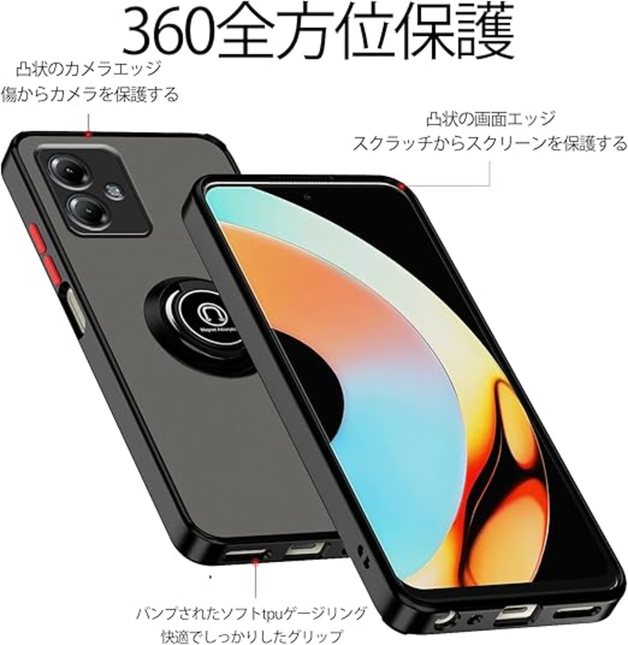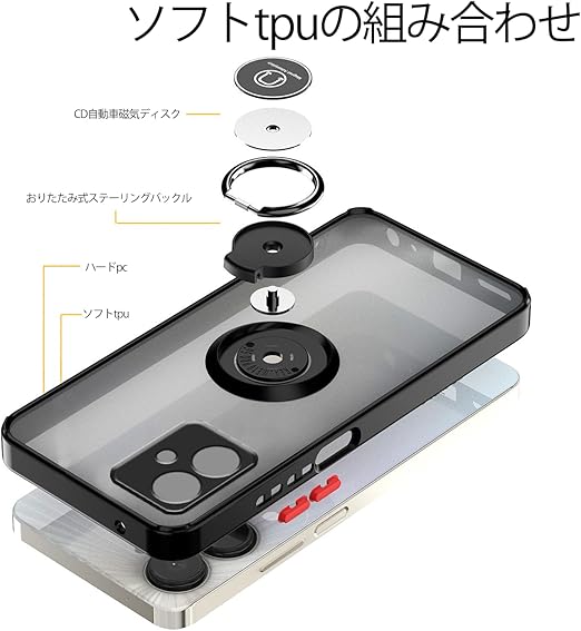 Anlalish携帯ケース For Moto G64 5G ケース透明 Motorola Moto G64y 5g スマホカバー リング 耐衝撃 シリコン人気 オシャレ車載ホルダー 対応 持っているカメラ保護 (黒) a