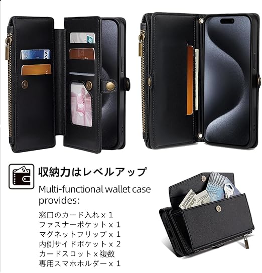 【特徴1:高品質PUレザー】外側のカバーには触感がとても良い高品質のPUレザーを採用します。内側のスマホホルダーはTPU素材の柔軟なソフトケースです。二重構造のフリップで本体を重ねて全面保護します、落下のダメージをうまく吸収し、誇り高い衝撃耐性を持ちます。