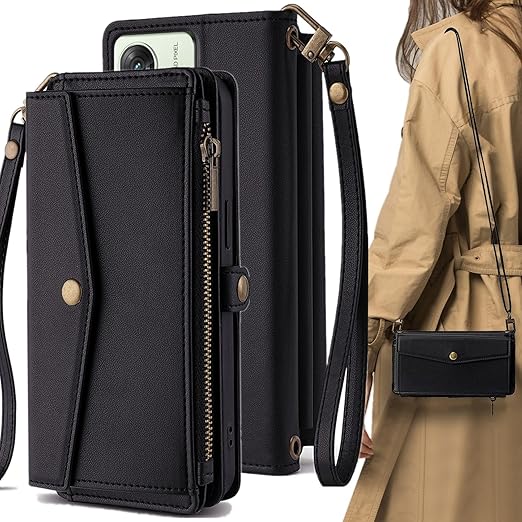 MOTOROLA用 Moto G64 5G モト G64Y 5G ケース 手帳型 通用 MotoG64 5G SIMフリー ショルダーケース MotoG64Y 5G ストラップケース XT2431-2 ワイモバイル 手帳ケース モトローラ G64 G64Y カバー 携帯ケース 適用 case Cobeimisr ショルダー バッグ ストラップ 斜め掛け スマホケース カードケース ブラック a