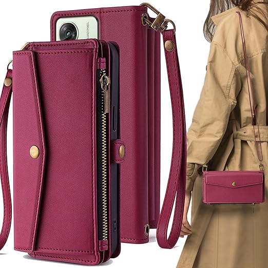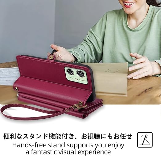 MOTOROLA用 Moto G64 5G モト G64Y 5G ケース 手帳型 通用 MotoG64 5G SIMフリー ショルダーケース MotoG64Y 5G ストラップケース XT2431-2 ワイモバイル 手帳ケース モトローラ G64 G64Y カバー 携帯ケース 適用 case Cobeimisr ショルダー バッグ ストラップ 斜め掛け スマホケース カードケース ワインレッド a