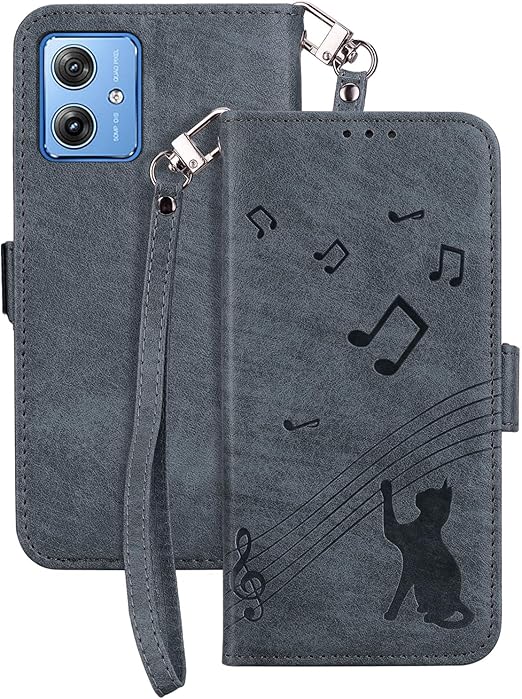 Moto G64 5G ケース モトローラ g64 ケース スタンド機能 moto g64y ケースカバー マグネット カード収納 耐衝撃 全面保護 moto g64 スマホケース 可愛い音? 猫柄 柔らかいTPU TOO&SOO Motorola moto g64 / g64y / g54 / moto G54 Power 5G ケース - グレー a