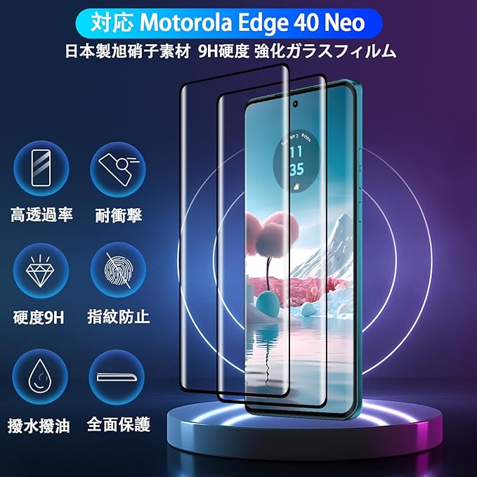 【日本製素材旭硝子製・耐衝撃性、飛散防止でさらに安心!】 対応 Moto Edge 40 Ne