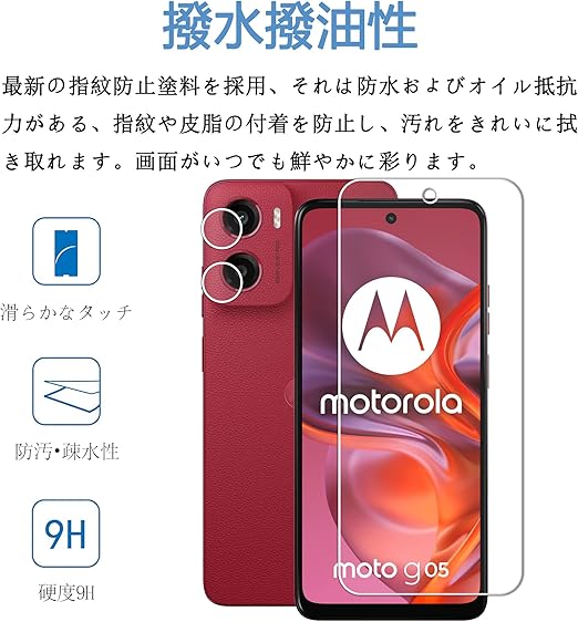 Briacicell【2+2枚セット】 対応 Moto G05 5g ガラスフィルム (2枚) + Motorola moto g05 カメラフィルム (2枚)【 硬度9H 旭硝子素材製】モトローラ G05 強化ガラス 液晶 保護フィルム 極薄 高透過率 防塵 防滴 飛散防止 気泡ゼロ 高感度 飛散防止 衝撃吸収 指紋防止 ラウンドエッジ加工 貼り付け簡単 撥油 a