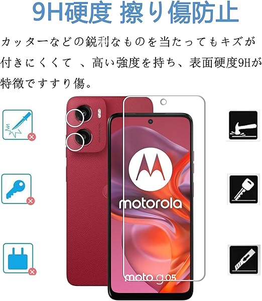 【超お得な4枚セット、対応機種】対応 Moto G05 5g 用のガラスフィルム (2枚)+Moto G05 5g 用のカメラフィルム(2枚)。ご注意: ご購入前にお使いの携帯電話のモデルをご確認ください