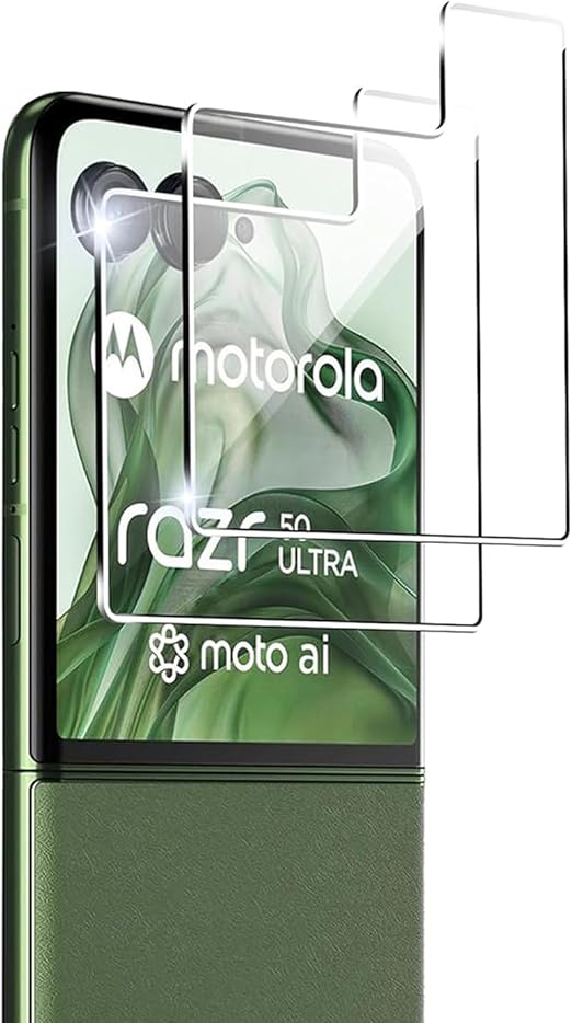 【対応機種】motorola razr 50 ultra ガラスフィルム、2枚セット。本ガラスフィルムはmotorola razr 50 ultra本体端部のカーブによるフィルム剥がれや、浮き上がりの防止、スマホケースの装着スペースを確保するため、motorola razr 50 ultra本体の曲面の縁にスペースを残すデザインとなっています。