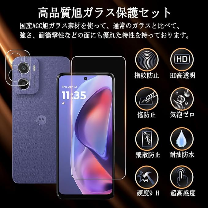 対応 Motorola Moto G05 ガラスフイルム 【2+2 枚セット-国産旭硝子】 moto g05 ガラスフィルム 2枚 + レンズ保護フィルム 2枚 モトローラ g05 液晶 保護フィルム 強化ガラス 【 硬度9H 耐衝撃 飛散防止 超薄 厚さ0.26mm 気泡ゼロ 3D Touch対応 高感度 撥油性 指紋防止 超耐久 ラウンドエッジ加工 】SNK-MTG054 a