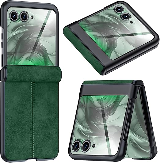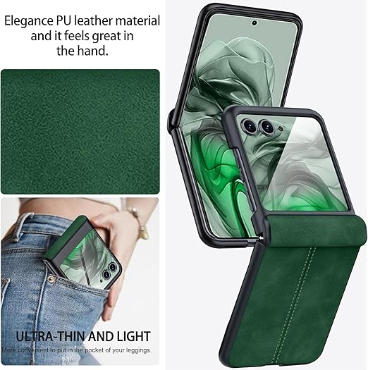 NINKI適応Moto Razr 50 Ultra ケース 液晶フィルム付き 手触り良き レザー製 PU革 ビジネス Qi充電対応 バンパー ワイヤレス充電 擦り傷防止 落下防止 指紋防止 レンズ保護 人気 モトローラ レーザー50 ウルトラ ケース (グリーン) a