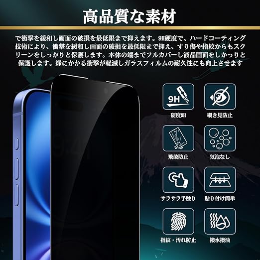 【高品質の材料-AGC素材】業界最高レベルの9H+硬度を有し、高品質な素材で衝撃を緩和し画面