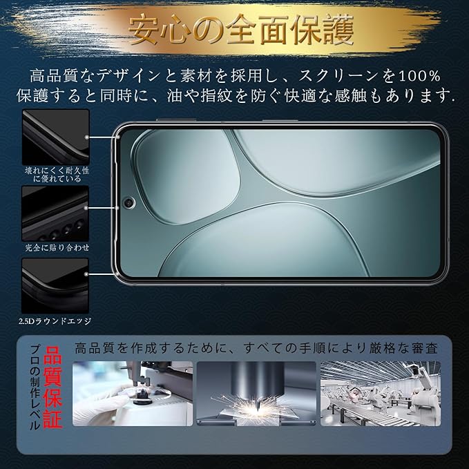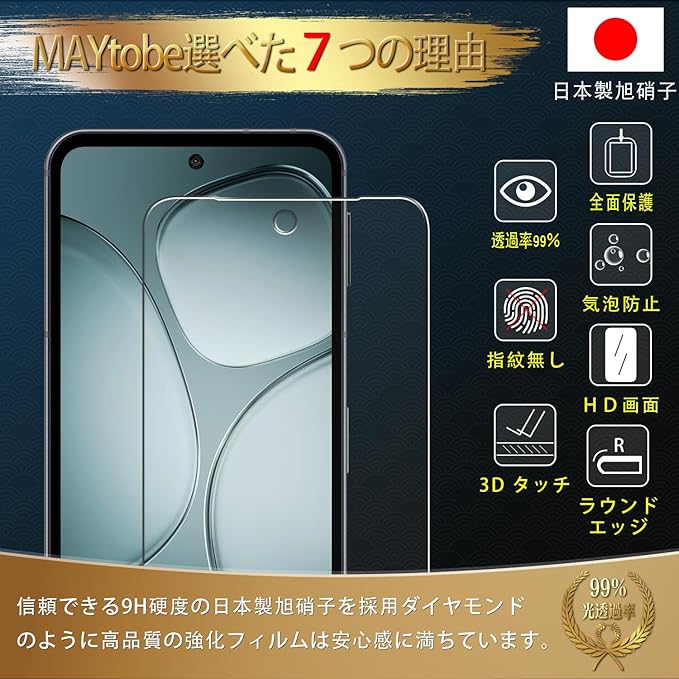 【★日本素材★品質保証】国産素材採用、日本旭硝子社製PET素材を使用します。通常のPETフィルムより4倍の強度、鍵やナイフなどの鋭利なものがスマホのスクリーンに与える損害を効果的に防止し、スクリーンをよりよく保護することができます。当社の製品は出荷前に人工的な検査を行い、最後にお客様の手に届くように高品質の強化ガラスフィルムを届けることができます。※対応 AQUOS sense 9 SH-53E SHG14 SH-M29。