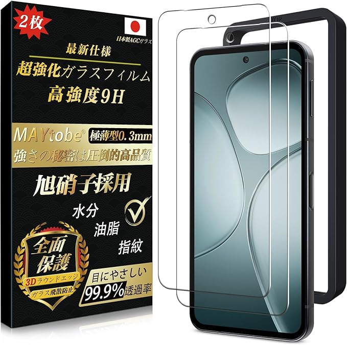 【2枚 ガイド枠付き】MAYtobe AQUOS sense9 ガラスフィルム 日本製旭硝子(2枚)指紋認証対応 全面保護 硬度9H 超耐久 SH-53E SH-M29 SHG14 フィルム 極薄 99%高透過率 強化ガラス 液晶 耐衝撃 気泡なし 指紋防止 飛散防止 撥水撥油 自動吸着 貼り付け簡単 aquos sense9 保護フィルム アクオスセンス9 保護フィルム a
