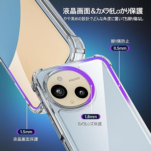 【細部まで保護・ストラップホール付き】カバーの縁はセンス9の画面とカメラレンズより1mm高く、保護ガラスフィルムを貼った状態で平置きしても画面が接触しません。角部分にAIRクッションを搭載し、落下時の衝撃を吸収します。エッジの設計と一体化されたエアバッグ設計が、意図しない落下に対して360°の包括的な保護を提供し、バンパーのような役割を果たす。ケースに付いているストラップホールにストラップをつければ、紛失や落下を防ぐ