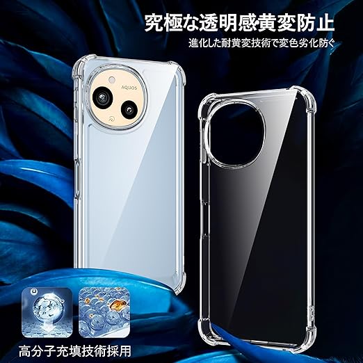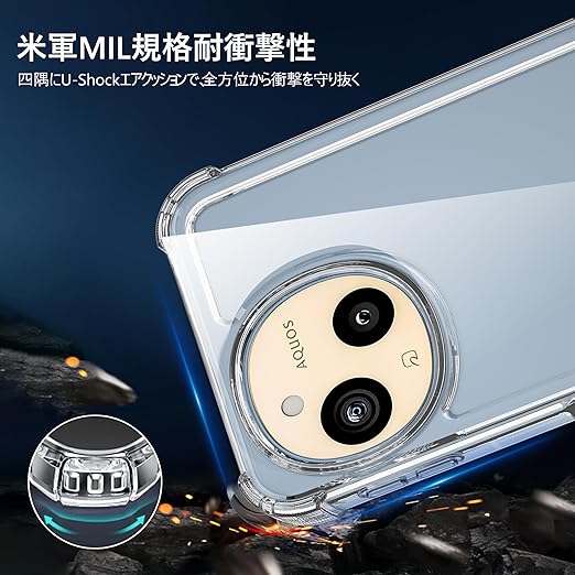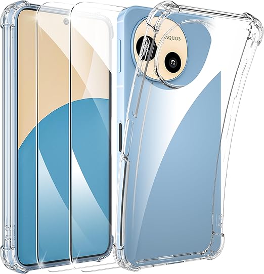 AQUOS sense9 耐衝撃 ケース クリア TPU ガラスフィルム付き 米軍MIL規格 全面保護 ストラップホール付き 黄変防止 アクオスセンス9 保護フィルム2枚付き C'estbien a