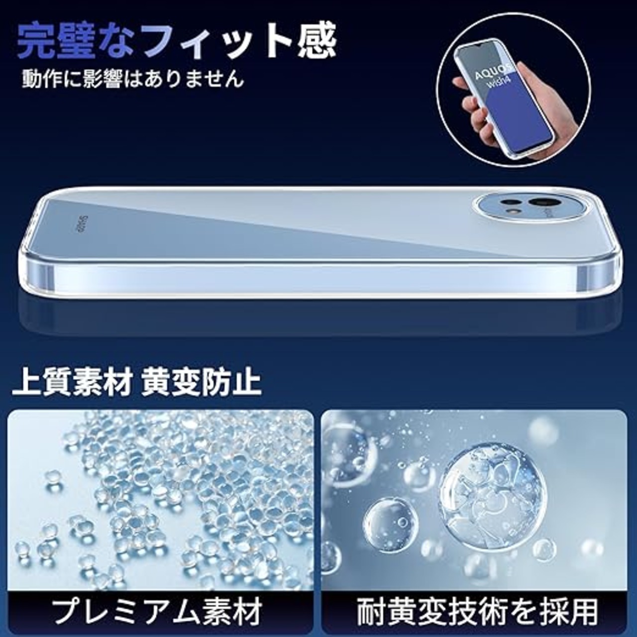 【高い透明性・黄ばみにくい】透明度は99%まで高まり、Aquos wish4本来の美しさを保ちます。背面は透明度が高いので、お気に入りのステッカーや写真を貼ってボディの美しさを際立たせるカスタマイズが可能です。さらに、最新の黄