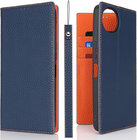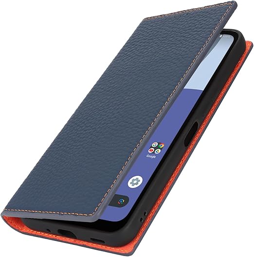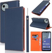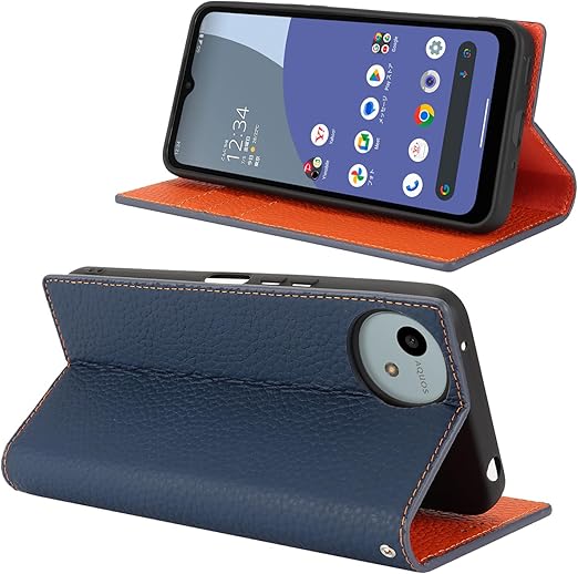 Eastwave Aquos Wish4 ケース 本革 牛革 SH-52E A402SH ケース 手帳型 カバー AQUOS WISH 4 SH-52E A402SH SH-M27 対応 手帳 本革 柔らかい 本皮 スプラットホール付き スプラット同梱 内蔵マグネット - ネイビー a