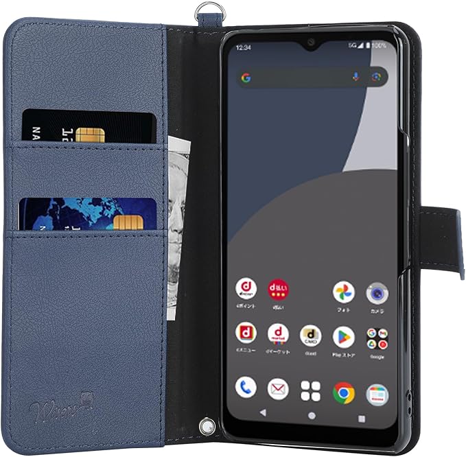wisers AQUOS wish4 SH-52E / SH-M27 / A402SH ケース 手帳型 スマホケース 対応 (ダークブルー) (カードホルダー/スタンド機能付き) ストラップ 2種付き (ハンドストラップ/ネックストラップ) 2024年 新型 a