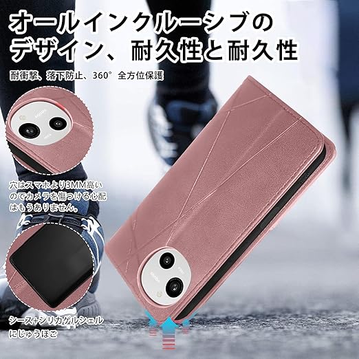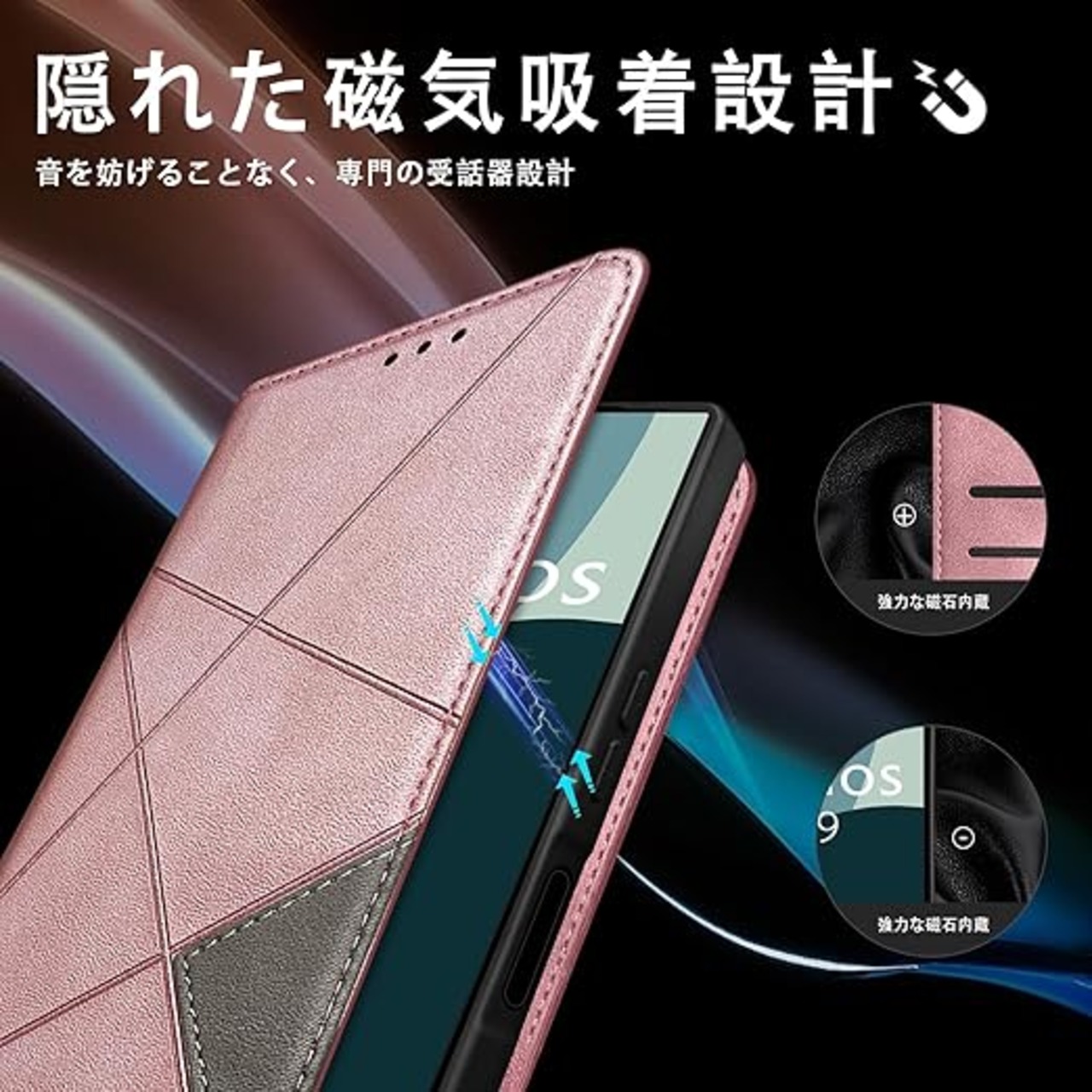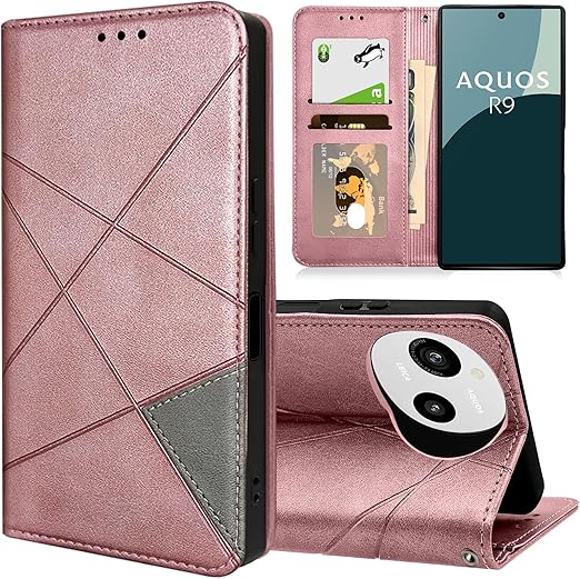 AQUOS R9 ケース 手帳型 SH-51E A401SH カード収納 財布型 カバー シャープ アクオス R9 耐衝撃 キックスタンド機能 スマホケース PU合皮 TPU素材 SH-M28 携帯カバー 薄型 軽量 ストラップホール付 ローズゴールド a
