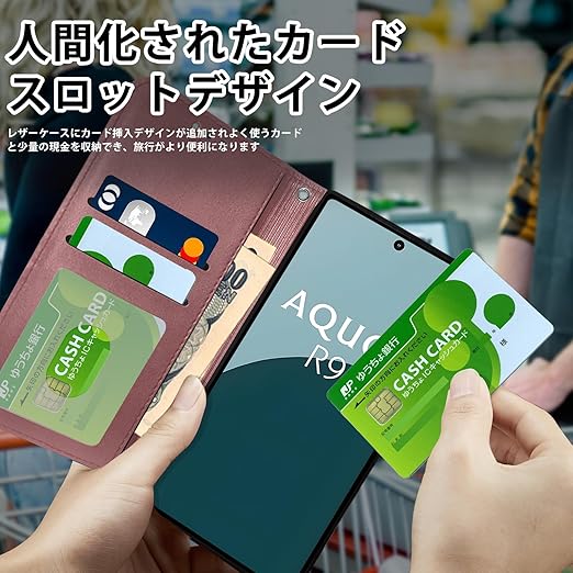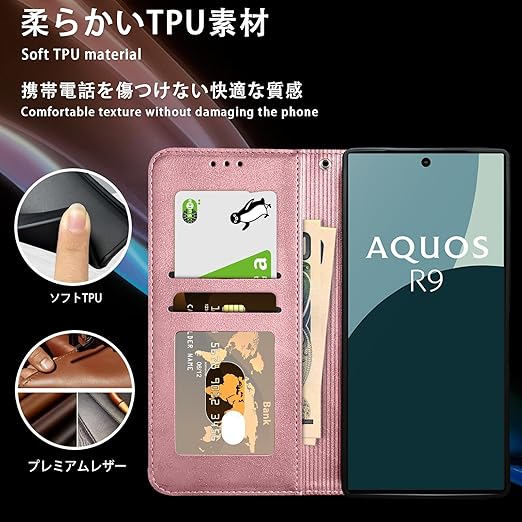 【適用機種】AQUOS R9 (SH-51E A401SH)専用ケース に対応なので。※購入前に対応機種をご確認よろしくお願い致します。外部のカバーは高級感が溢れるPU合皮を採用して、肌触りがよくて耐久性もよく、あらゆる方向からの衝撃、しっかりと本体を保護してくれます。TPU素材を採用、柔軟性が高く着脱が簡単で変形しにくく、ベタつかず適度な柔らかさで触り心地が良い。