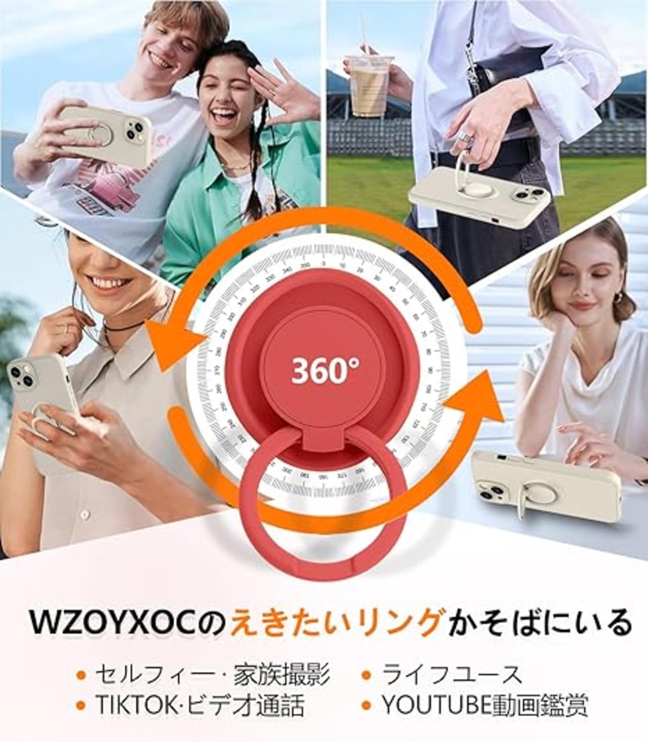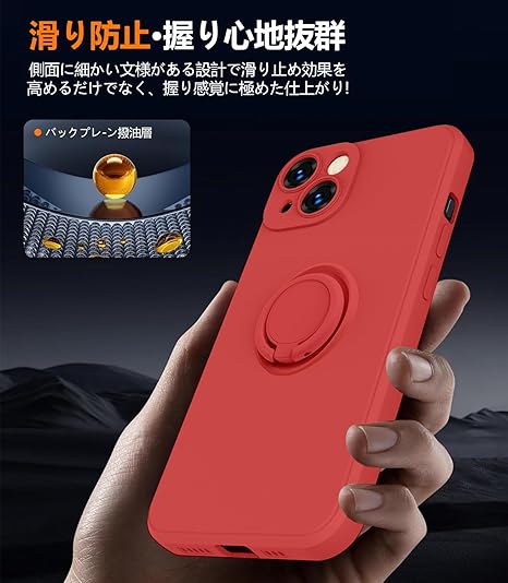 【リング付き&スタンド機能】:リングは360度回転可能で、180度の角度調節も可能です。ケースを横置きにするとスタンド機能になり、持たずに動画鑑賞などを楽しむことができます。指をリングに通して一本指で持つことで、片手で携帯電話を操作でき、落下を防止します