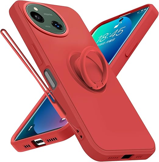 AQUOS R9 用 ケース リング ストラップ付き SH-51E カバー ストラップホール付き ソフト シリコン ケース おしゃれ 耐衝撃 軽量 薄型 スタンド機能 車載ホルダー対応 アクオス R9 携帯ケース サンザシ赤 R-YTDS-R9-13 a