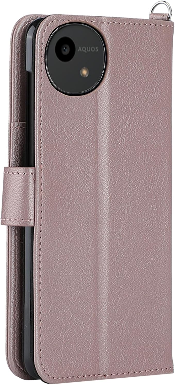 wisers AQUOS wish4 SH-52E / SH-M27 / A402SH ケース 手帳型 スマホケース 対応 (ローズゴールド) (カードホルダー/スタンド機能付き) ストラップ 2種付き (ハンドストラップ/ネックストラップ) 2024年 新型 a