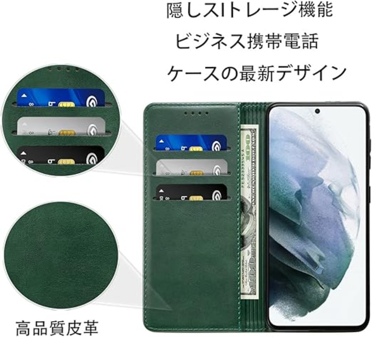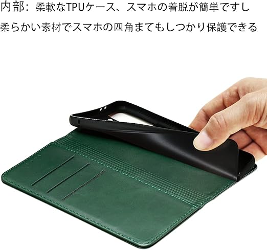 Sense9 ケース 手帳型 高質PUレザー AQUOS Sense9 ケース 耐衝撃 SH-53E SH-M29 カバー SHG14 ケース シャープ センス9 カバー 内蔵マグネット開閉式 ベルトなし Sense9 スマホケース おしゃれ カードポケット スタンド機能 便利 スプラット同梱 携帯ケース (グリーン) a