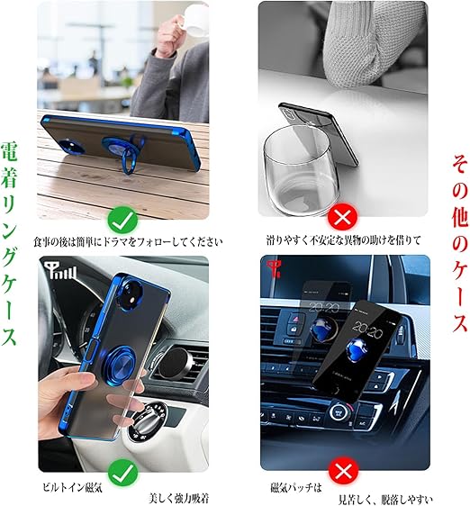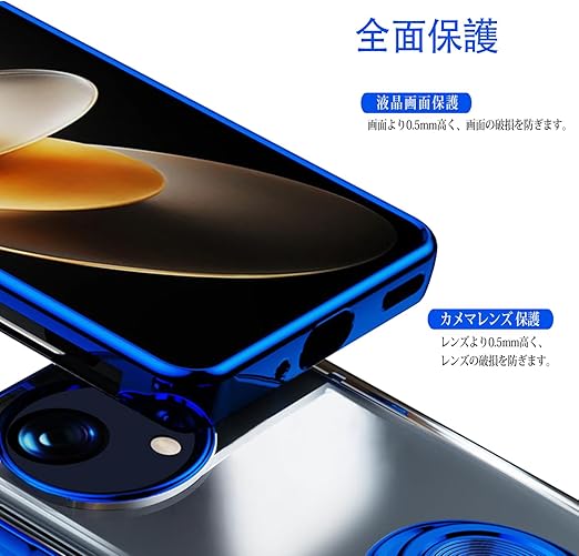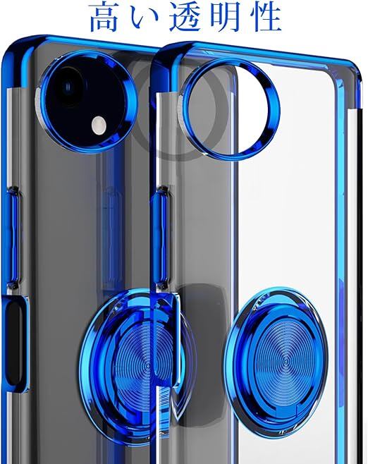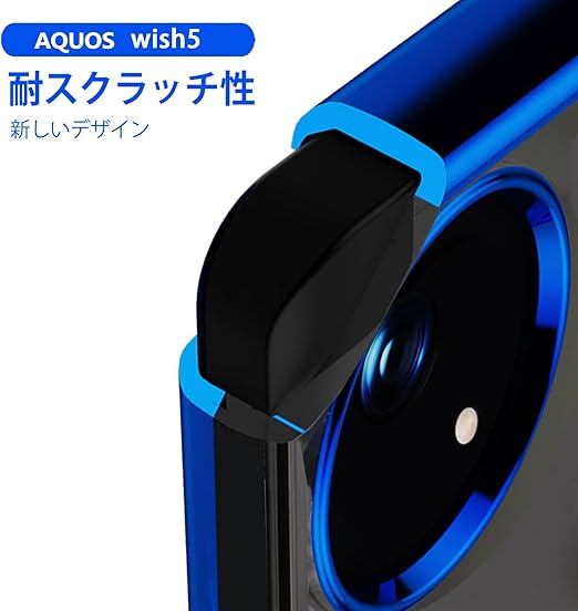AQUOS wish5 用 ケース SH-52F SH-M32 カバー透明TPU 耐衝撃 青メッキ加工 リング ストラップホール付き スタンド機能 車載ホルダー対応 滑り止め 落下防止 シャープ wish5 バンパー(ブルー 1枚セット) a