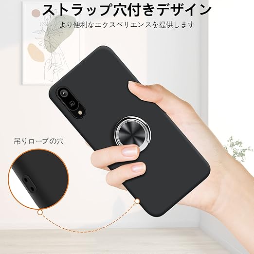 AQUOS Sense4 plus 用 ケース リング付き SH-M16 SH-RM16 用 ケース シリコン保護ケース 磨り表面 スマホケース tpu スリム 薄型 ストラップホール付き 一体型 指紋防止 軽量 人気 アクオス センス4 プラス 用 携帯カバー 黒 W-PYZH-01-46 a