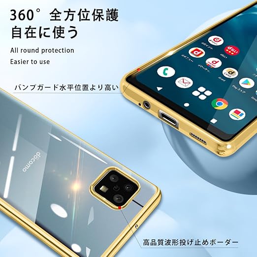AQUOS sense6/sense6s ケース クリア 全面保護 SH-54B SHG05 SHG07 SH-M19 SH-M19A SH-RM19 カバー シャープ センス6/6S ソフト 透明 スマホケース TPU 薄型 耐衝撃 軽量 メッキ加工 携帯カバー ストラップホール付き 落下防止 擦り傷防止(ゴールド) a