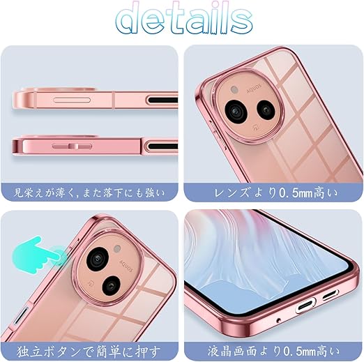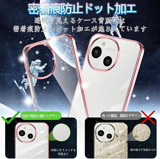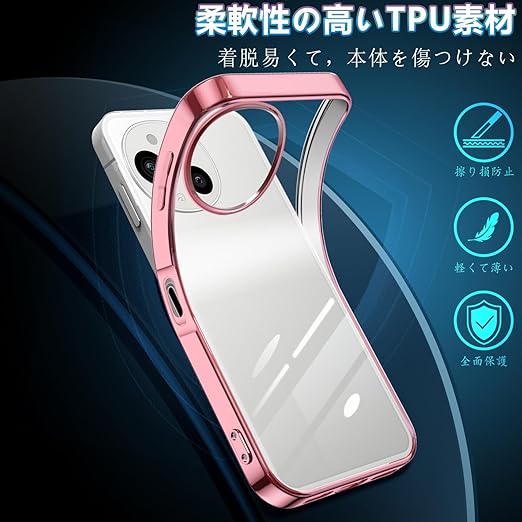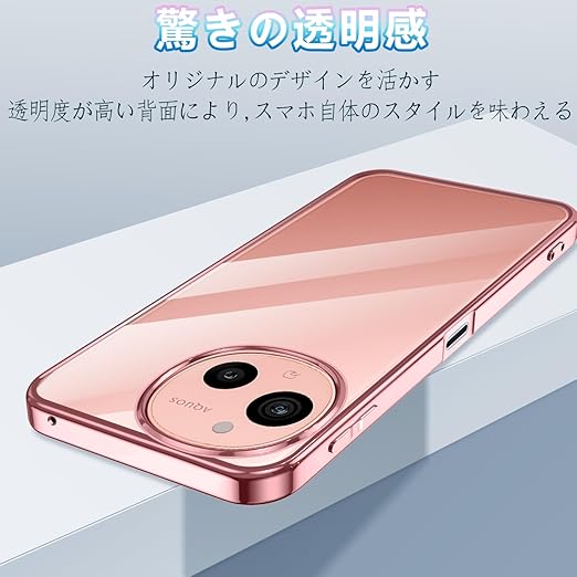 AQUOS sense9 ケース クリア アクオスセンス9 耐衝撃 SH-53E SHG14 SH-M29 スマホケース 薄型 センス9 ケース TPU 透明 メッキ加工 軽量 ストラップホール付き (ローズゴールド) a
