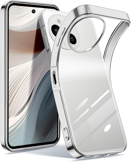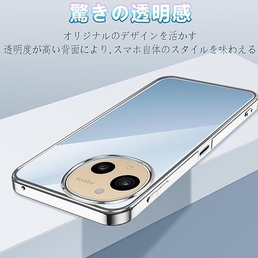 AQUOS sense9 ケース クリア アクオスセンス9 耐衝撃 SH-53E SHG14 SH-M29 スマホケース 薄型 センス9 ケース TPU 透明 メッキ加工 軽量 ストラップホール付き (シルバー) a