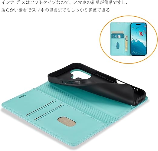 ・高品質のPUレザーを使用しており、柔らかく手触りが良いだけでなく、長時間の使用でも色落ちや劣化を防ぎ、天然皮革のような高級感と柔らかさを持ちながら、耐久性にも優れています。環境にも優しく、さらに耐水性や耐汚れ性も備えています。インナーケースは柔らかいソフトTPU素材を採用して、スマートフォンに