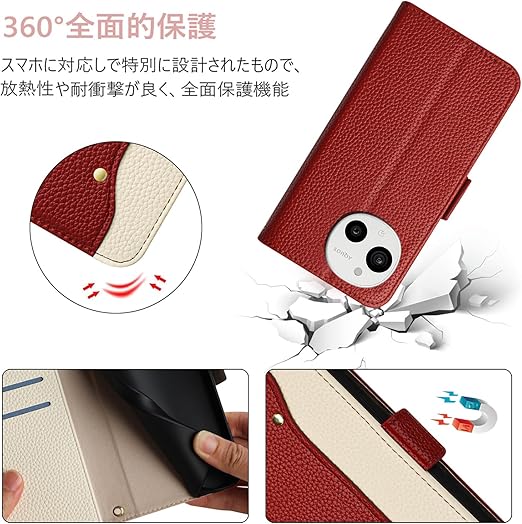 【360°保護】:携帯ケース外部に良質PUを採用して作成して、滑り止めを持っていて、指紋と防いだ油あかの機能を防ぎます。内面にTPU軟殻のために、放熱性はよくて、容易である着脱と耐衝撃。高さはカメラレンズの設計より高くて、レンズを良く保護することができて、衝撃から本体を360°保護します。