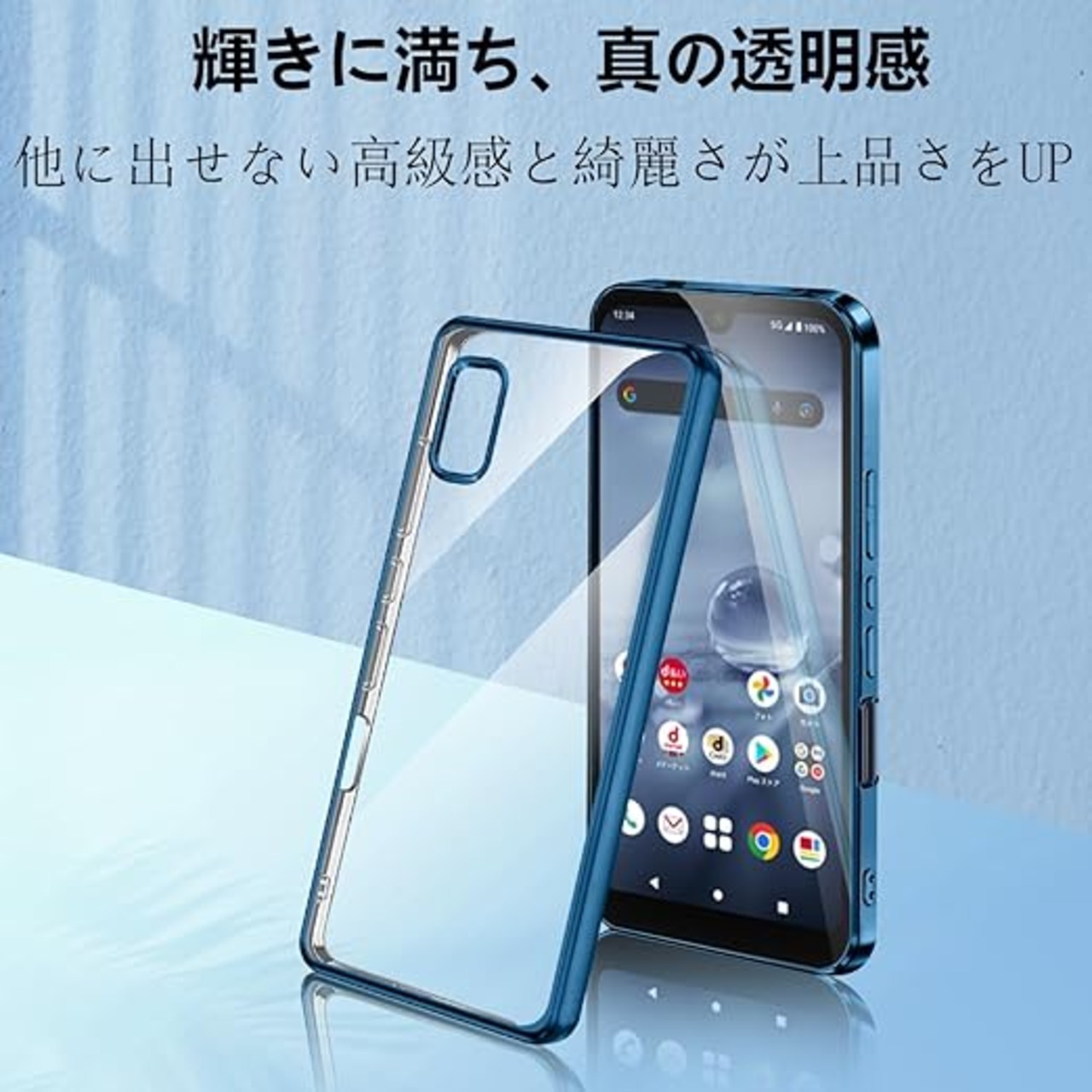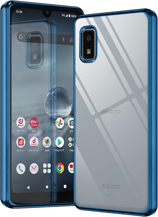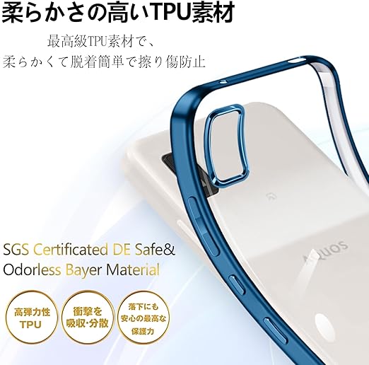 AQUOS wish2 wish ケース クリア アクオス ウィッシュ wish 2 スマホケース SH-51C SHG06 A104SH SH-M20 カバー 透明 保護カバー 耐衝撃 軽量 ソフト TPU 薄型 スマホ ストラップホール付き(ブルー) a