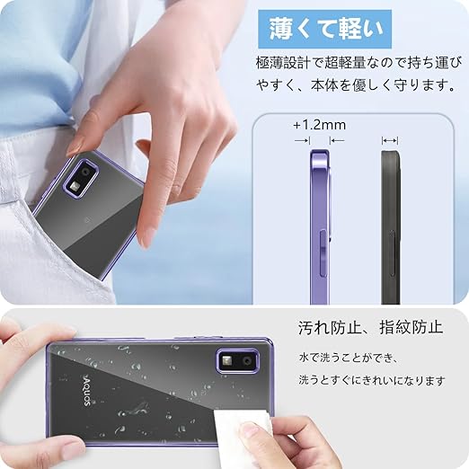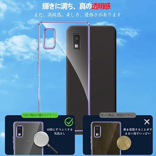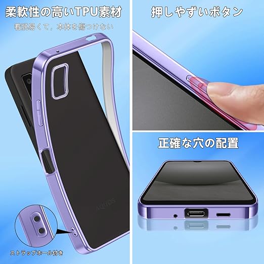 AQUOS wish3 ケース クリア ウィッシュ3 カバー 透明 スマホケース 耐衝撃 黄変防止 SH-53D A302SH SH-M25 A303SH 対応 TPU 保護カバー メッキ加工 ソフトケース 滑り止め 耐久性 ストラップホール付き アクオス ウィッシュ3 携帯ケース(パープル) a